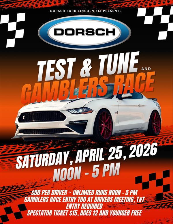 This event includes an all run Gamblers Race. Buy In and track length to be determined at drivers meeting. Test & Tune entry is required to participate in the Gamblers Race.